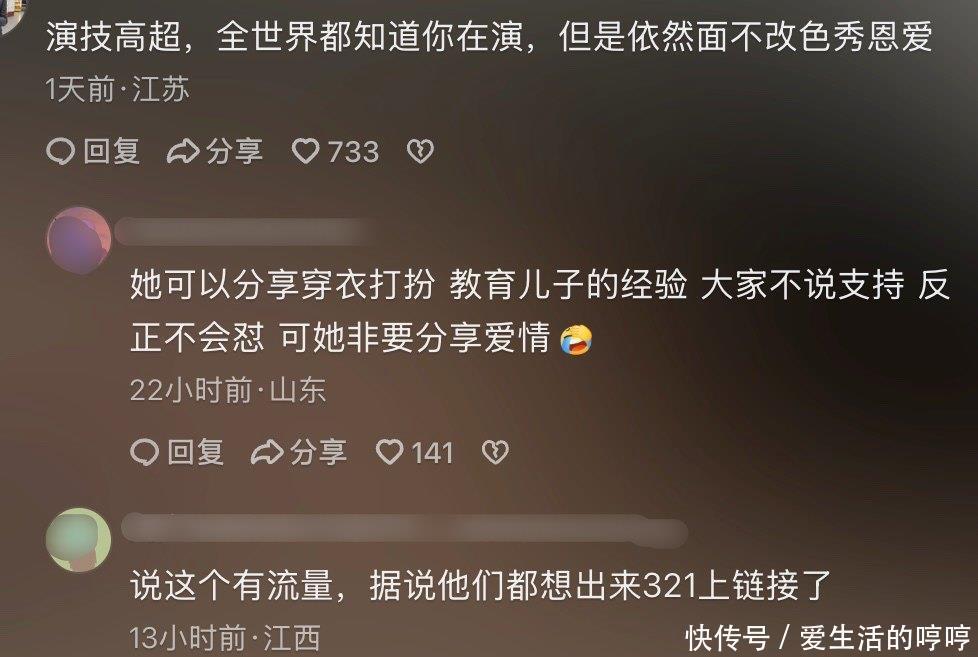 只是令人发笑的是,携手走过三十多年的老夫老妻,在娱乐圈这个名利场中绯闻遍布,一转身却开始在镜头前表演恩爱,讴歌伉俪情深了。