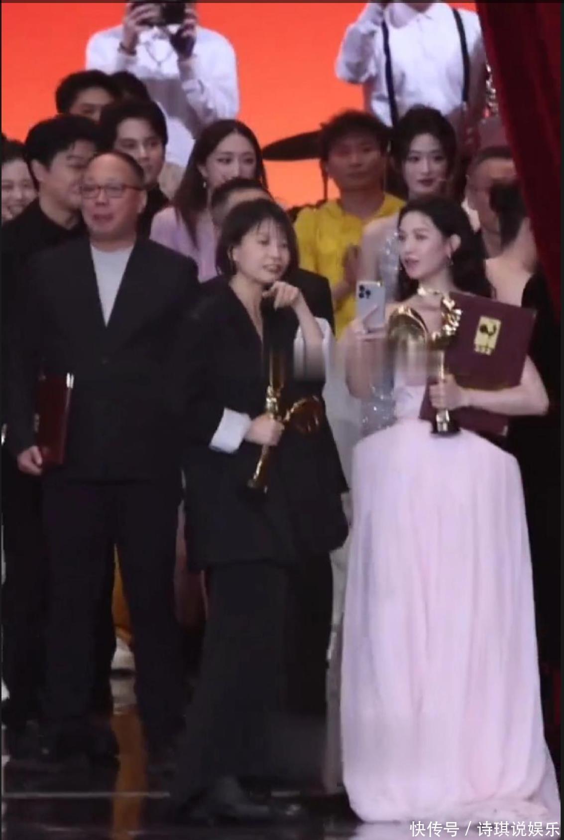 要知道,这俩人以前可不是这样。以前一起出席活动,那叫一个亲密,搂搂抱抱黏在一起,怎么看都是关系超好的朋友。可这次颁奖礼的大合影上,宋佳全程没跟钟楚曦有半点互动,就连眼神都没对上一下,冷淡得让人意外。毕竟两人还因为同一部戏获奖,宋佳是影后,钟楚曦是最佳女配,按理说该互相道贺才对。