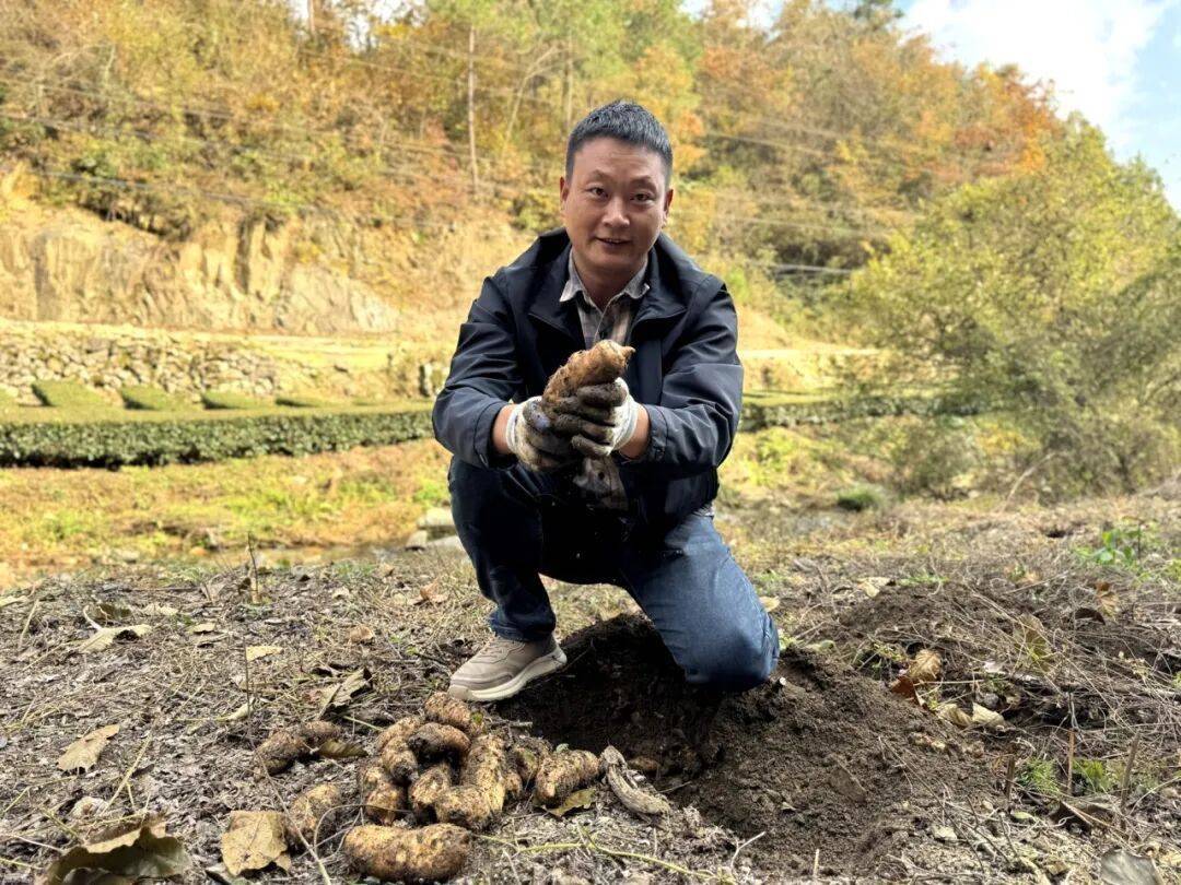 只见画面中,一位种植户正在田里刨挖。片刻,个个形似土豆的天麻接连出土,很快在田埂边堆起了小山,直播间的互动热情瞬间被点燃。