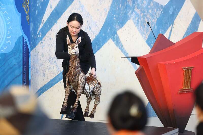 演员姜晓雅娣演示剧中的“偶——藏羚羊”。中央歌剧院供图