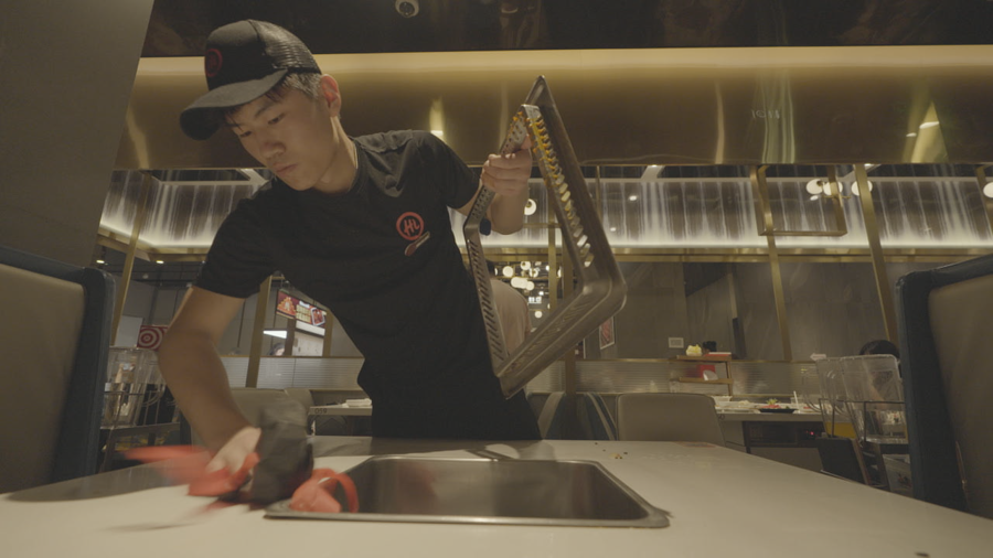 《推拿馆》选题的启动,则来自一篇关于贵州盛华职业学院盲人学院的报道,这是一间培养了700多名视障者成为推拿技师的特殊学院。分集导演张家睿记得,首先联系上的是片中主角之一滕召敏,他工作的推拿馆窗外就是陆家嘴的三件套。在后面的拍摄日里,摄制组几乎12个小时与推拿师们同时在岗,和他们一起挤压进昏暗的按摩店里。30多名技师,除了店长和专项做正骨的老师傅外,都是视障者,大家在这间推拿馆里工作、吃饭,宿舍被安排在附近的小区里。“作为明眼人,我也想借这部影片去修正我们对他们的看法,想要打破大众对视障群体的长期误解。所以这部片子让视障者自己说话。你会发现他们需要的是被当作一个完整的人去理解,也让健全人重新理解正常,并意识到‘正常’不是唯一标准,‘感知’也不是只有视觉。”张家睿说。