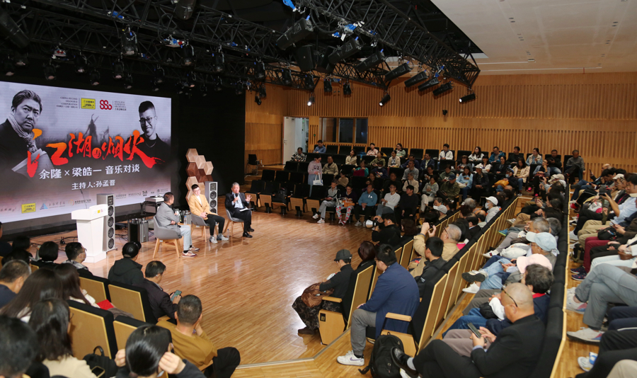活动现场,上海交响乐团音乐总监余隆、青年作曲家梁皓一与文艺评论家孙孟晋围绕“江湖与烟火”展开主题对谈,分享创作背后的故事与思考。余隆说:“上海交响乐团不仅要演奏世界经典,更要让世界听见中国声音。”他高度肯定梁皓一的创作,称其音乐兼具画面感与哲学思考,是传统文化现代转化的大胆探索。